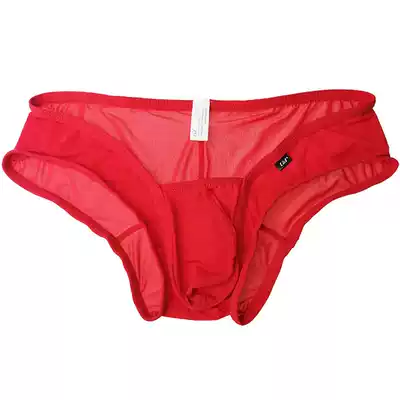 U & I underwear men's flat horn Ice Silk thin breathable convex scrotum support personality red ui tide low waist small four-corner hip hip pants