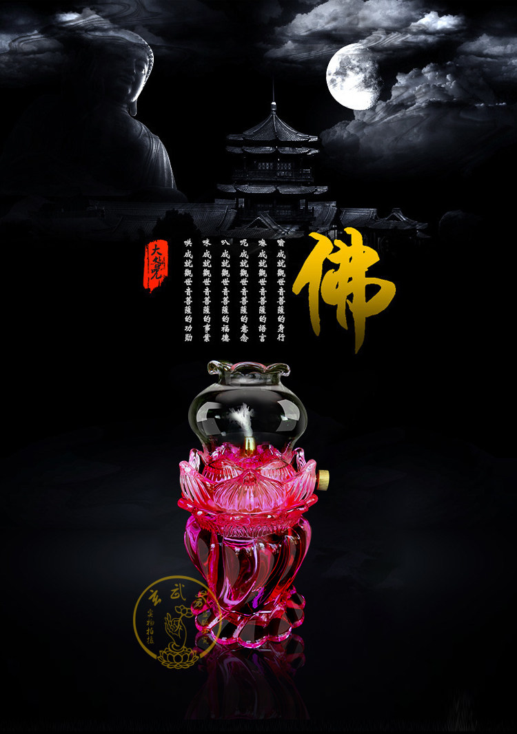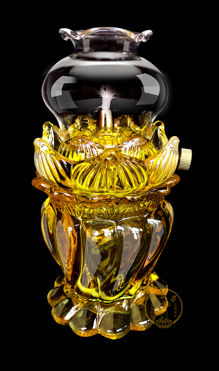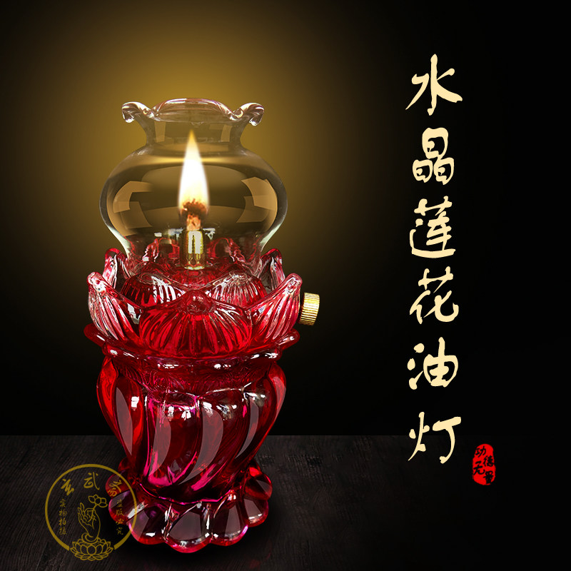 Crystal glass windproof lotus flower dimming lamp eco-friendly lotus lamp liquid ghee lamp long bright light for the Buddha lamp