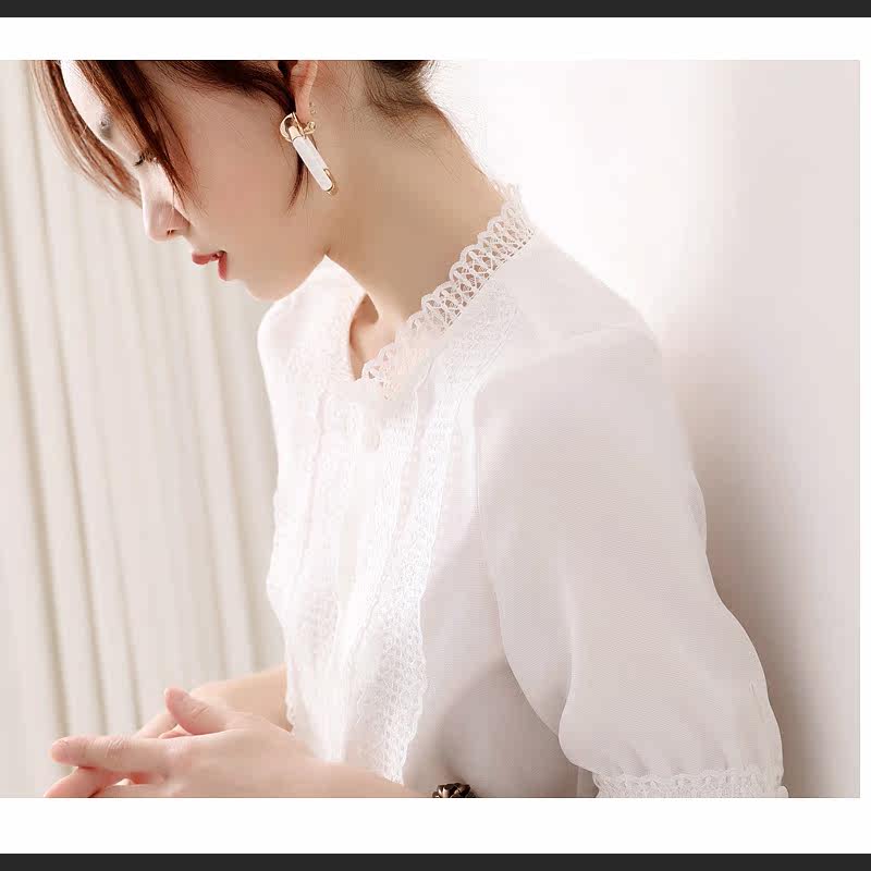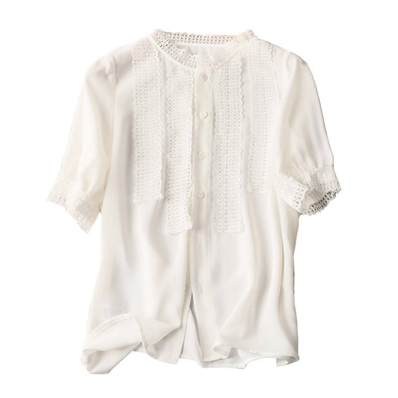 Day-series women's dress Summer new French Miniature Fairy Lace edge decorated with small upright collar shirt hooded blouse
