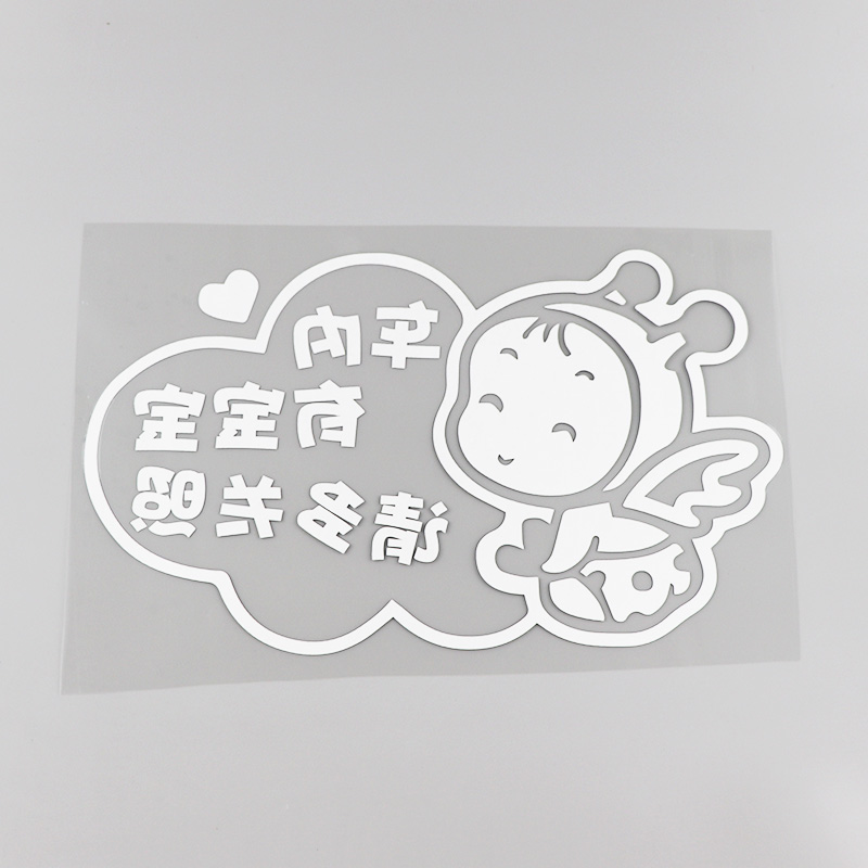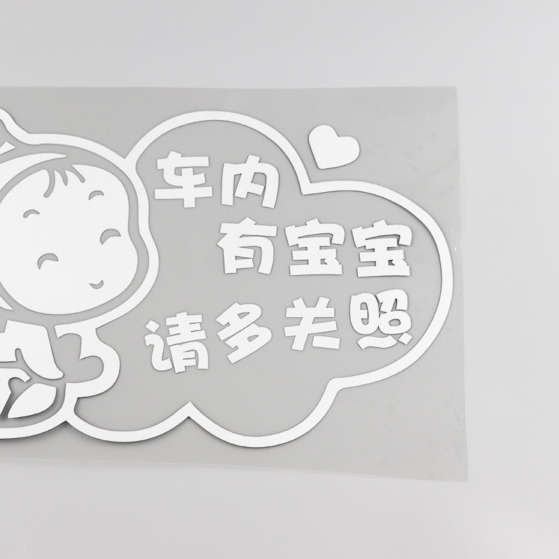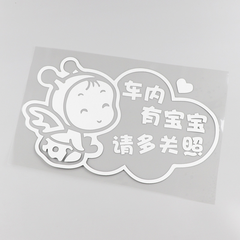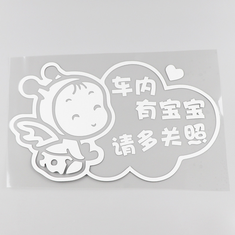 HY609 Reflective Silver White Little Bee with Baby in the Car, Please Take Care of You 28*17CM Leaflet