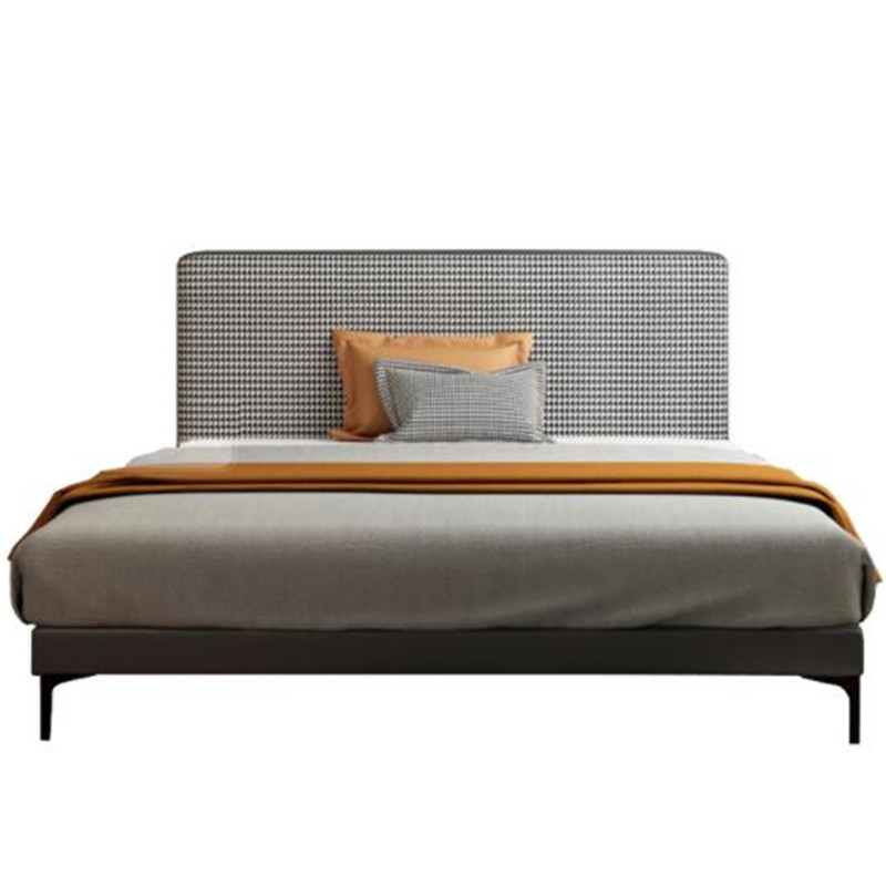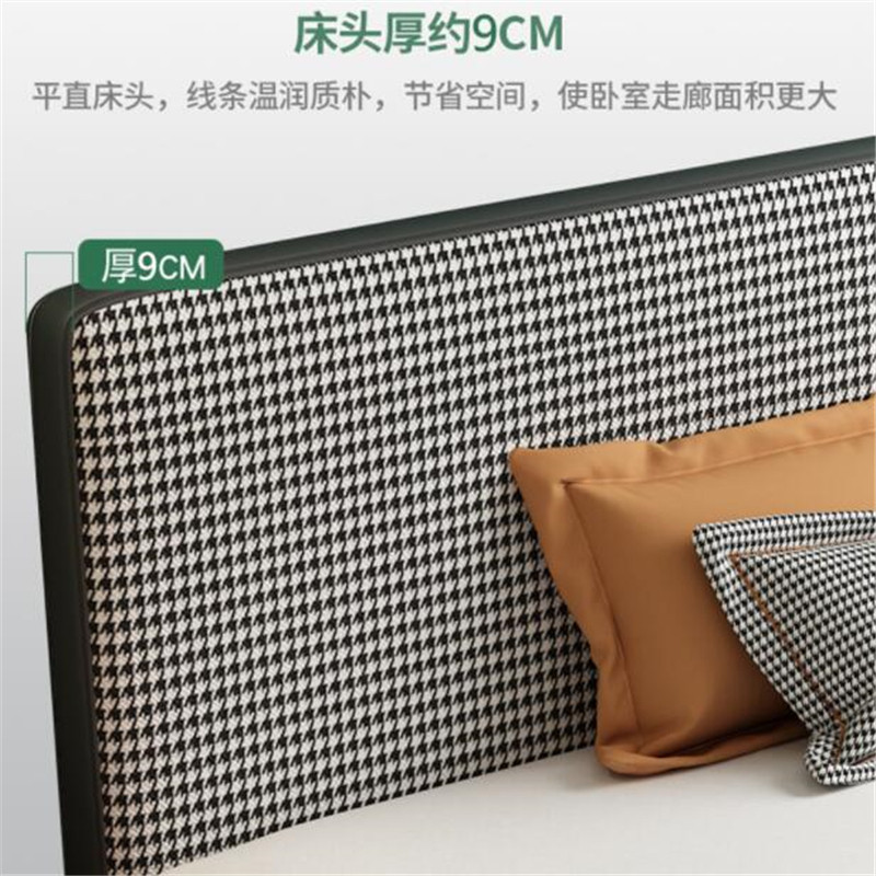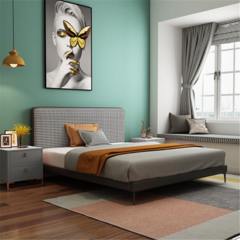 Nordic fabric bed houndstooth modern minimalist solid wood retro double bed master bedroom small apartment light luxury net red wedding bed