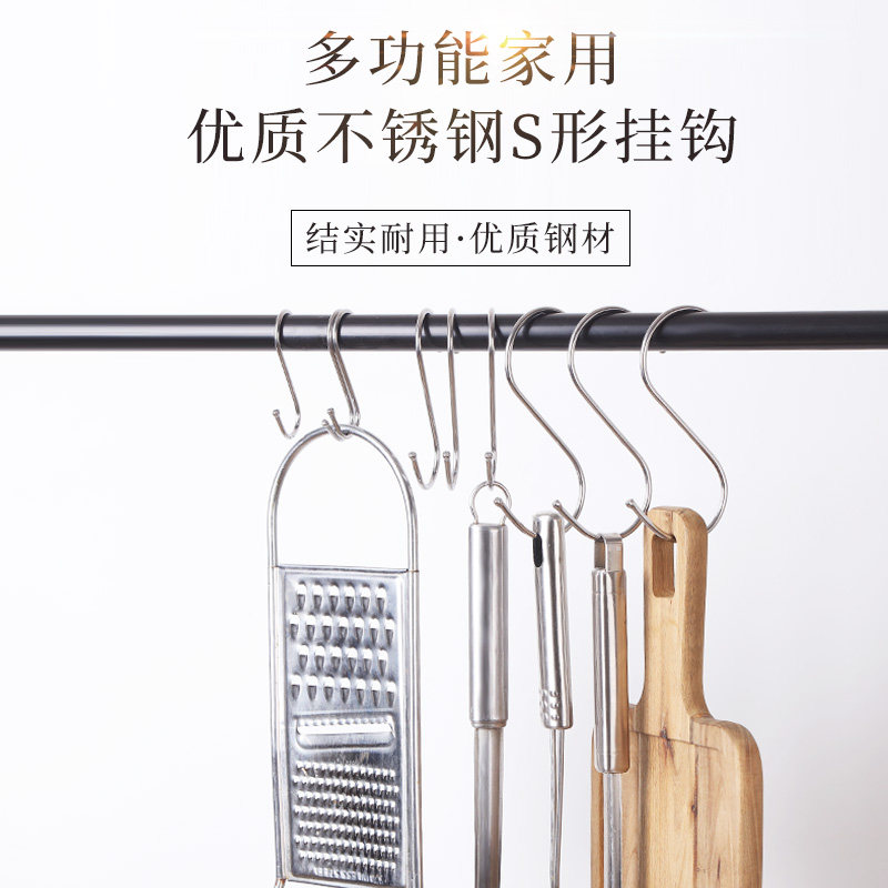 Multifunction S hook stainless steel hook bathroom hanging clothes hook door rear containing hook metal S type hook sunburn meat hanging rack-Taobao