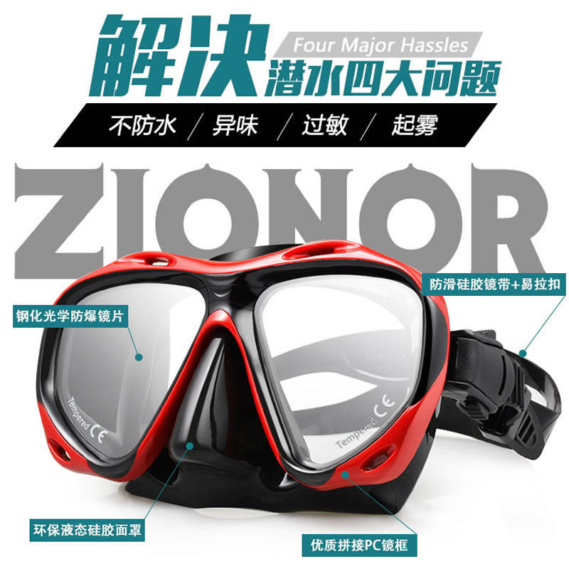 American VR brand large frame myopia diving goggles anti-fog waterproof swimming goggles transparent set snorkeling glasses professional degrees