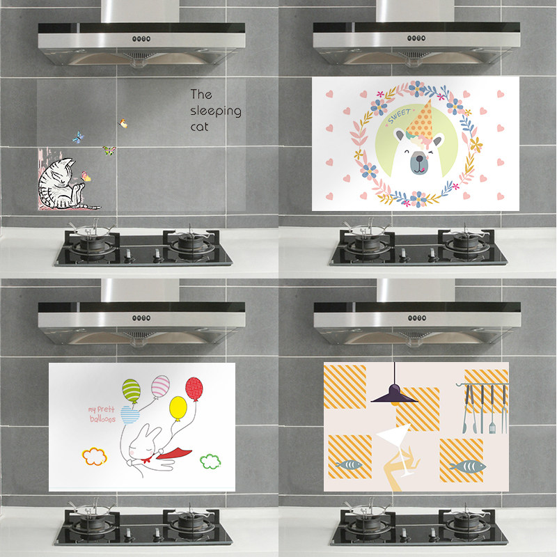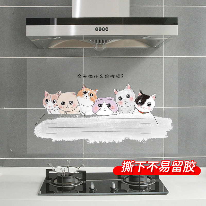 Kitchen anti-oil sticker high temperature resistant waterproof oil-proof self-adhesive wall with cabinet hearth with range hood porcelain brick wall idea