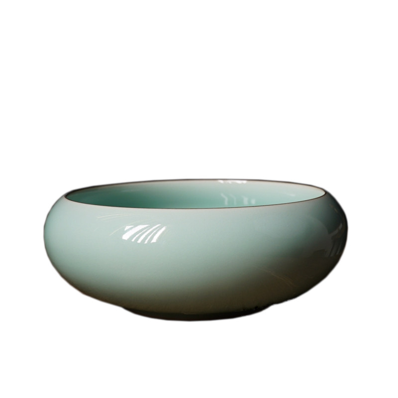 (Seeking Road) Pink Green Big Round Washing Longquan Celadon Ceramic Tea Set Kung Fu Tea Ceremony Accessories Washing Household Tea Washing