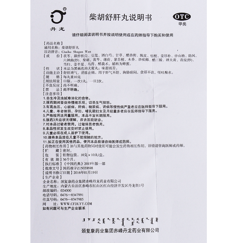 Danlong Chai Hu Shu Gan Pill 10 pills vomit acid water to regulate qi, eliminate distension and relieve pain, liver qi does not relieve chest and flank bulges