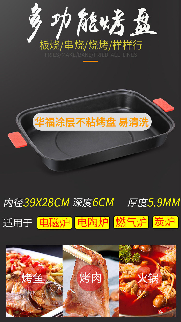 Induction cooker grilled fish plate Rectangular baking plate Commercial paper grilled fish paper wrapped fish special pot Multi-functional household dry pot