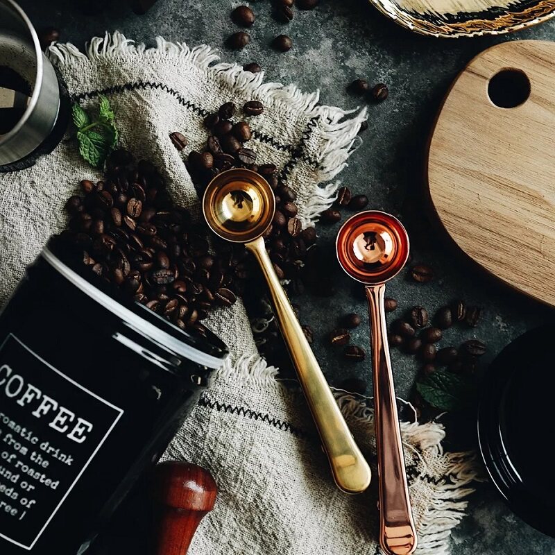 Cozyhome Yihe two-in-one multi-functional stainless steel golden food seal clip coffee bean measuring spoon milk powder spoon