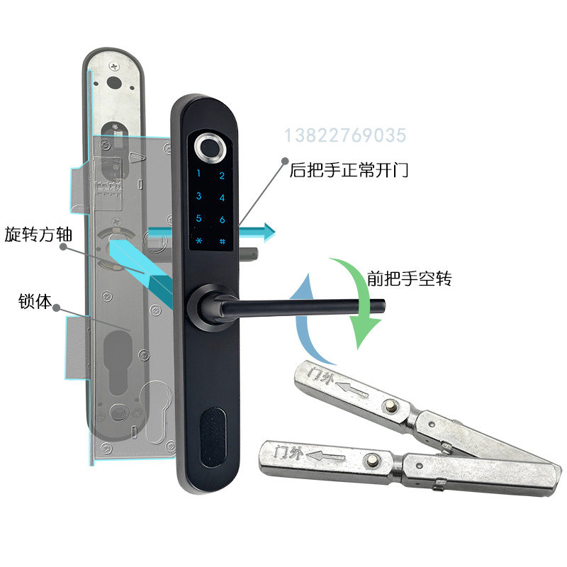 Hotel lock escape square rod lock set general-purpose special-shaped plus long square shaft anti-theft door lock cylinder accessories rotation