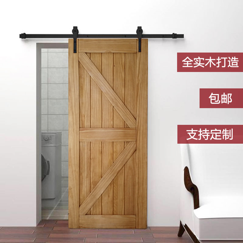 Custom barn door Nordic powder room Solid wood sliding door Log hanging wheel door Vintage sliding door Kitchen hanging sliding door