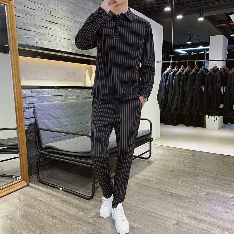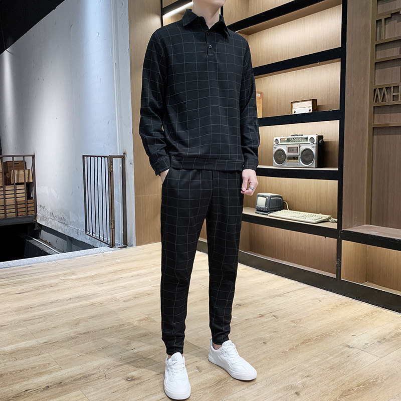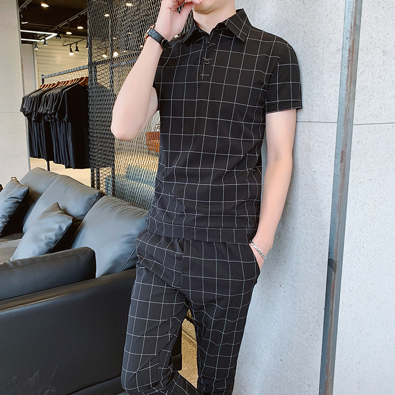 Summer suit men's trends full range of plaid short sleeves 90% trouser blouses Harun pants Korean version Two men's set
