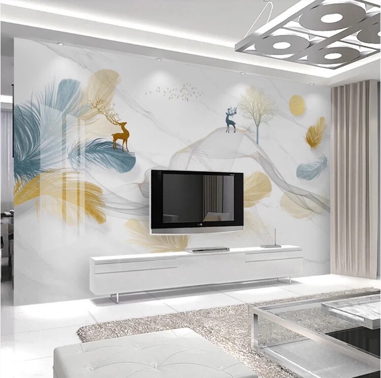 3D living room TV background film and television wall painting decoration 5d wall cloth self-adhesive wallpaper atmospheric wallpaper 8d stereoscopic wall cloth
