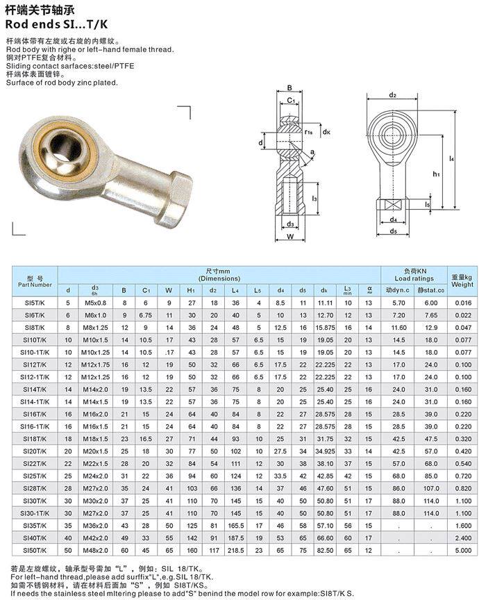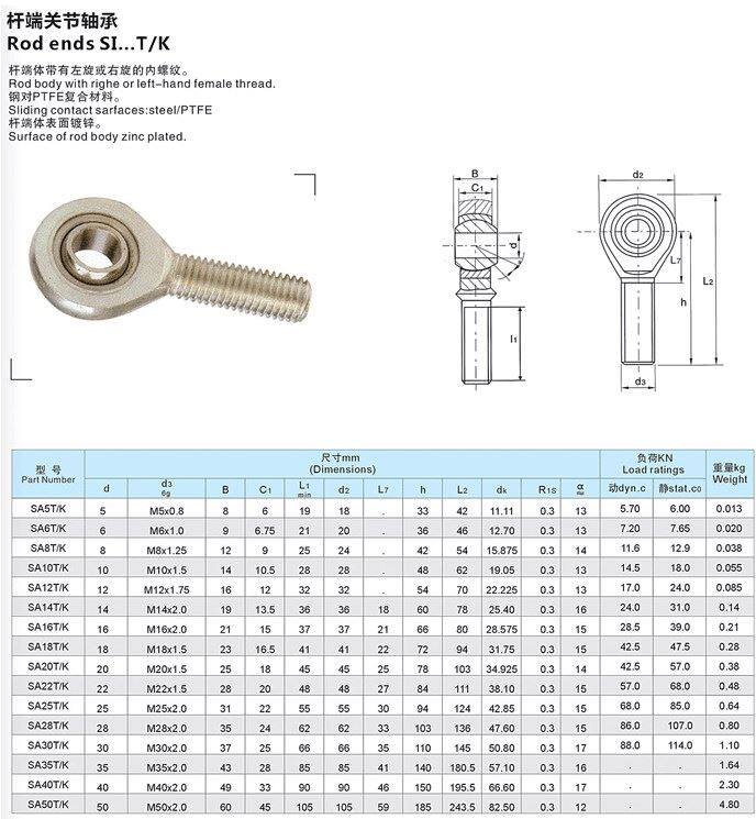 RSGZ Imported Fish Eyepole End Joint Bearing POS 18 20 20 25 25 28 35 35 thread