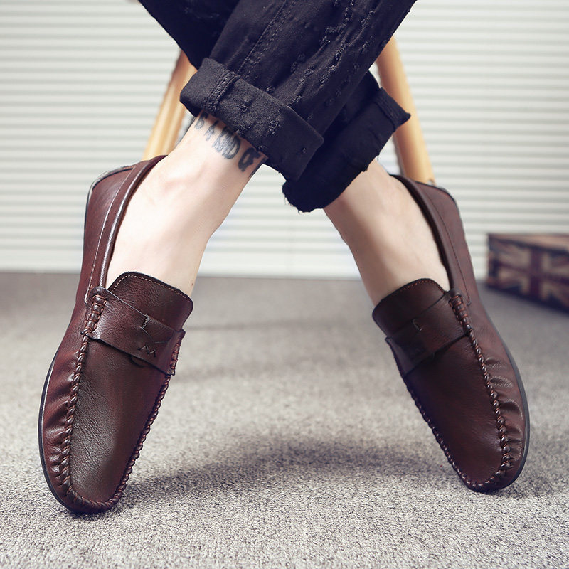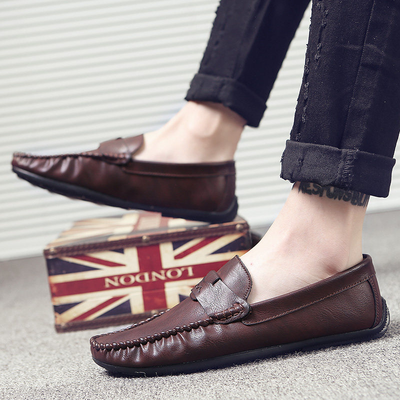 2022 new men's beanie shoes leather spring trend Korean version of the British small leather shoes men's autumn and winter lazy casual shoes