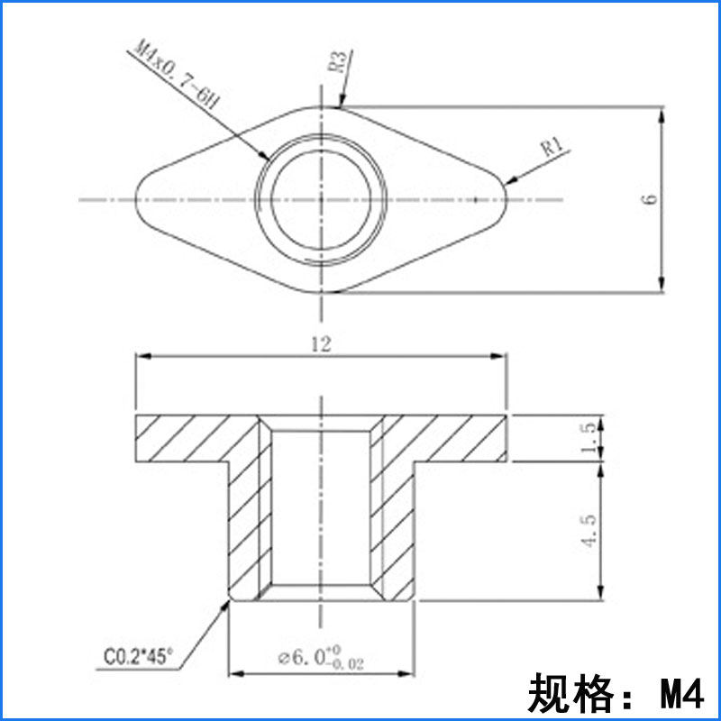 brass 304 stainless steel rhombus nut M3M4M5 synchronous belt strap insert false tooth ATN10ATN20