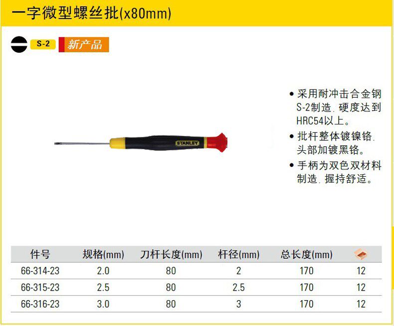 American Stanley short word micro screwdriver 2 0*80mm small screwdriver 66-314-23