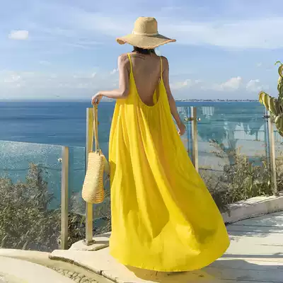 Super fairy backless dress women Xia Xishuangbanna Sanya holiday ins Super fire beach dress seaside travel photos