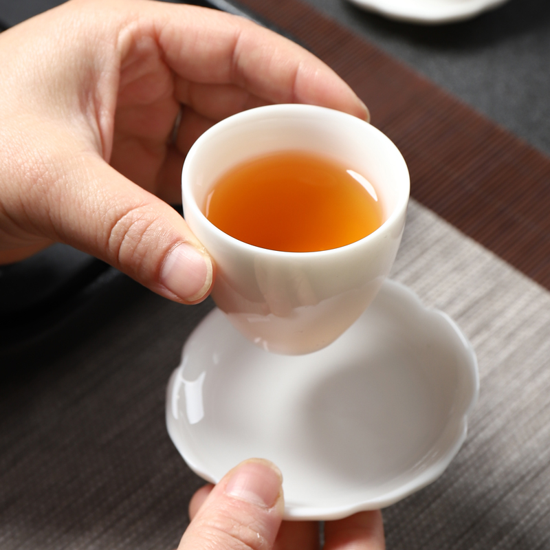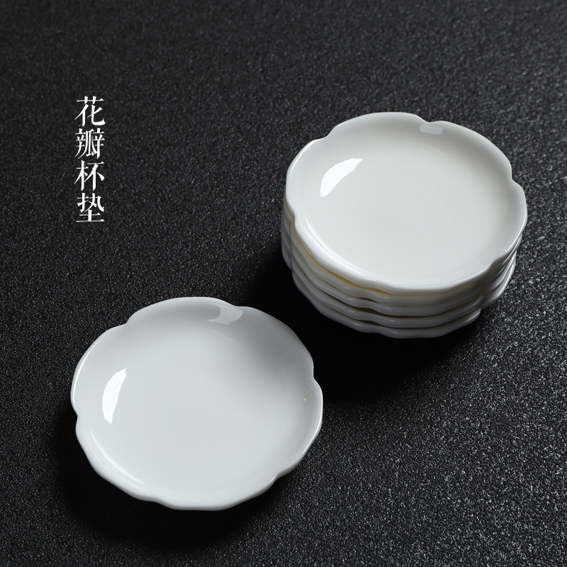 Tea cup holder white porcelain small coaster cup holder goat jade ceramic kung fu tea set zero with tea cup creative anti-hot insulation pad