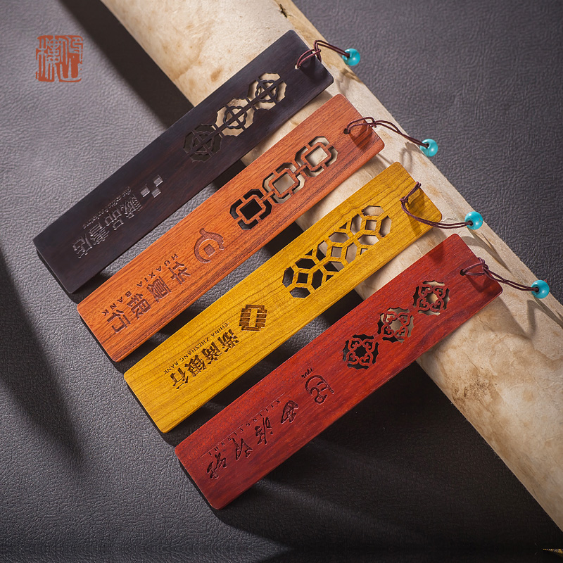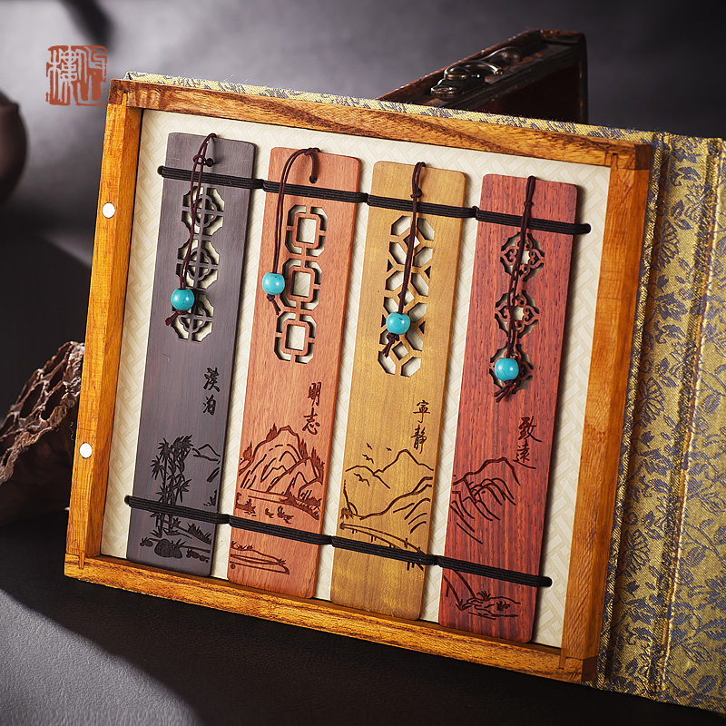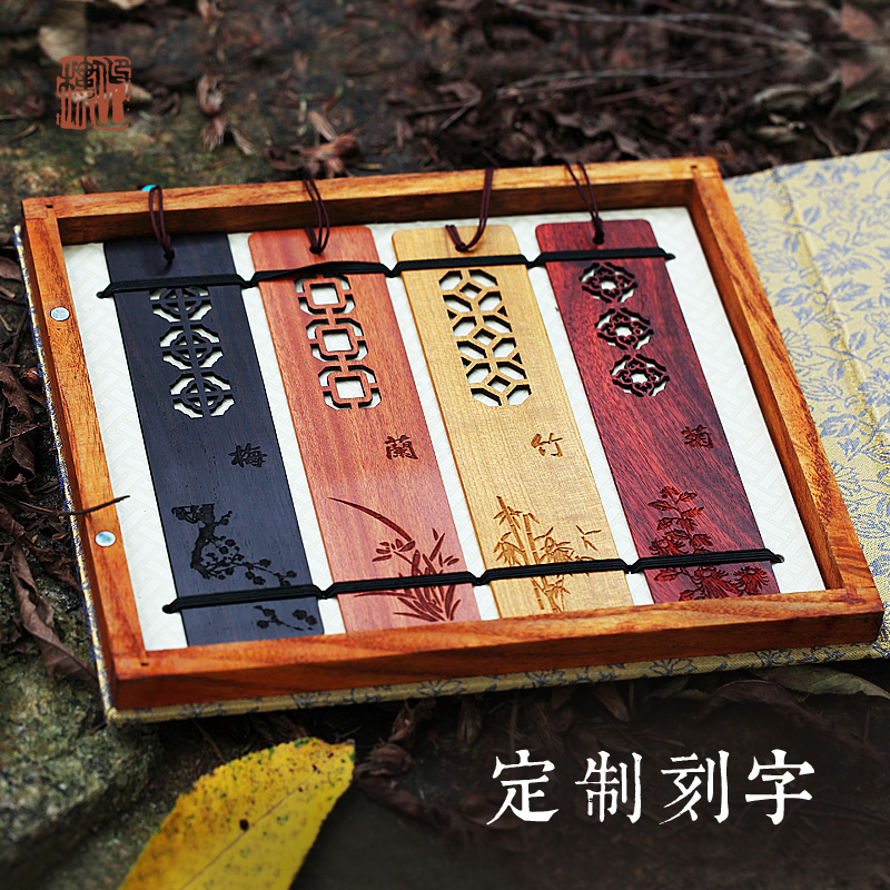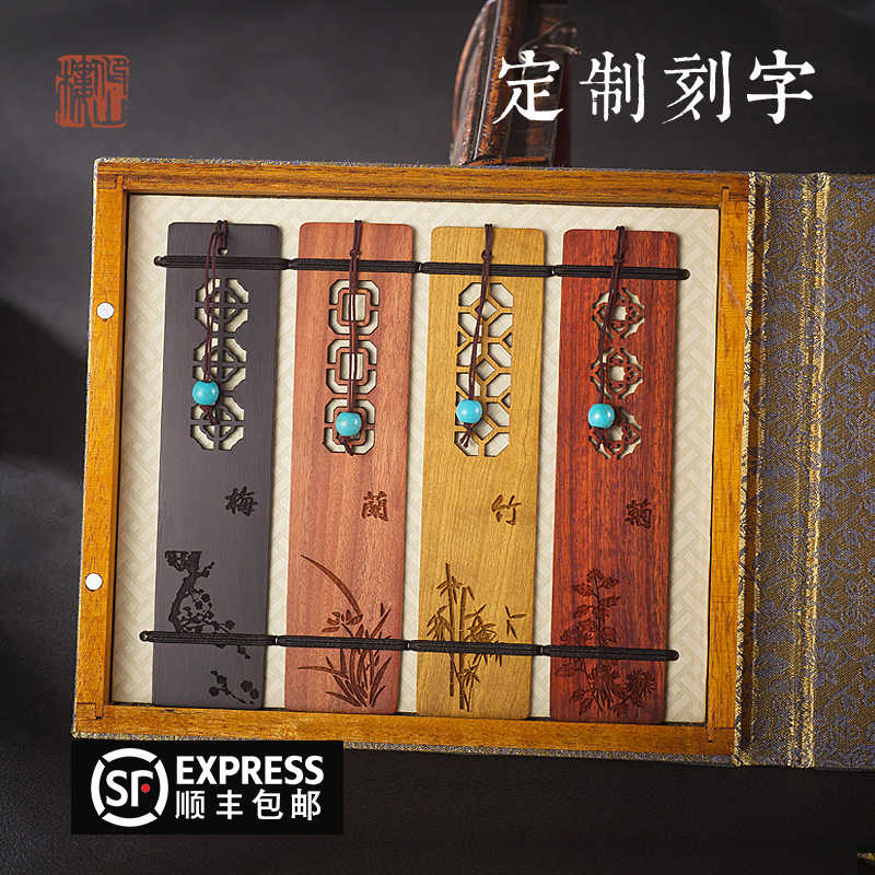 SF graduation gift Classical Chinese style mahogany quality plum orchid bamboo chrysanthemum bookmark four-piece exquisite hollow window grille to map custom logo lettering gift boxed cultural and creative commemorative gift products
