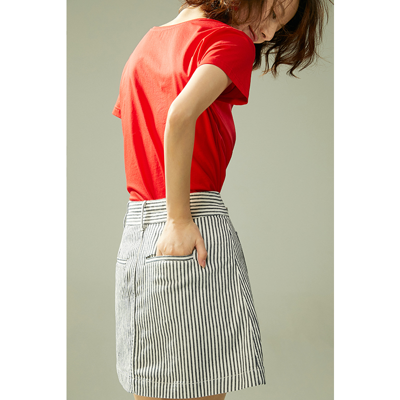 BEEWOOD original summer dress new women's striped skirt temperament slim bag hip skirt short skirt micro-elastic