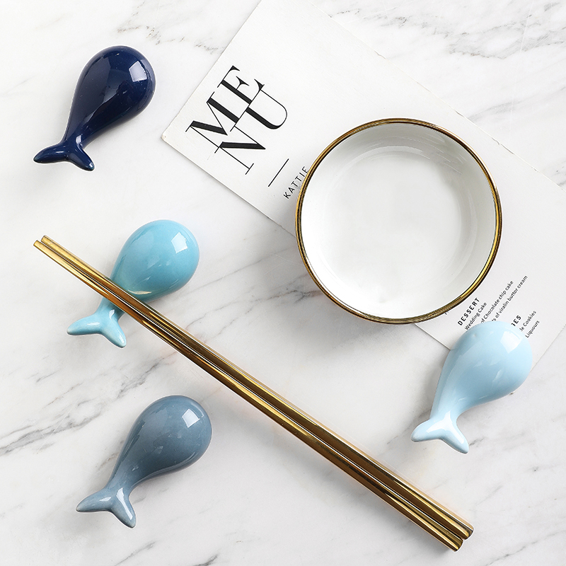 Creative cute whale shape chopstick holder Japanese chopstick holder Chopstick holder Ceramic spoon holder Spoon holder Small fresh