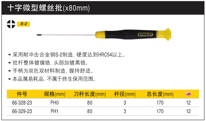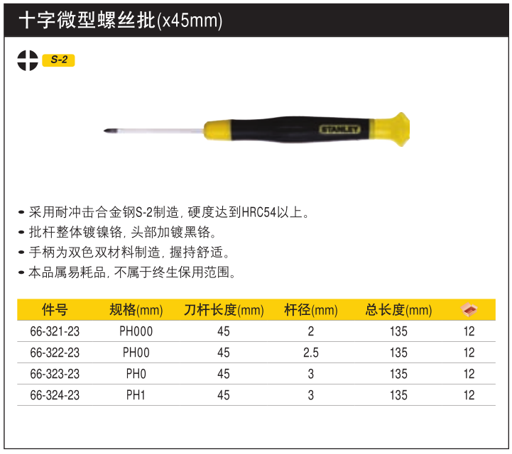 Stanley cross miniature precision screwdriver 3mm screwdriver PH0*45mm clock screwdriver 66-323-23