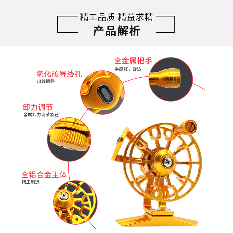 Ultra-light all-metal front playing wheel with de-stressed fishing line round fly fishing wheel winter fishing ice fishing wheel special rock rod fishing line fishing wheel