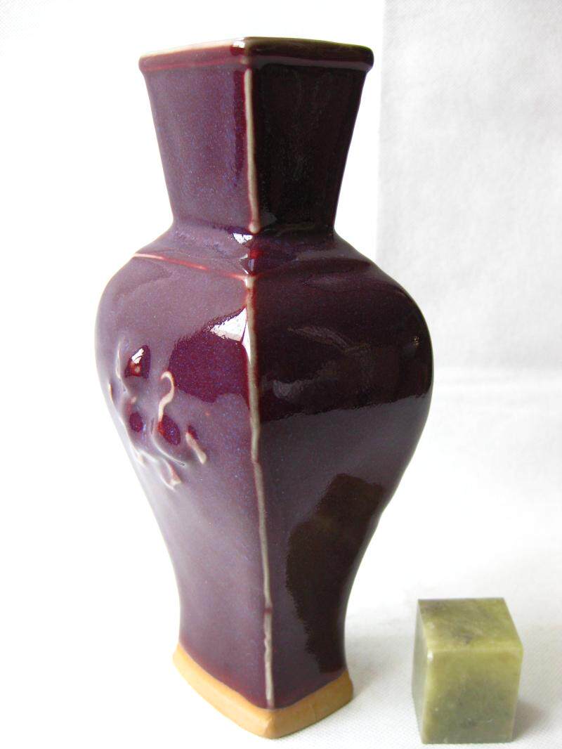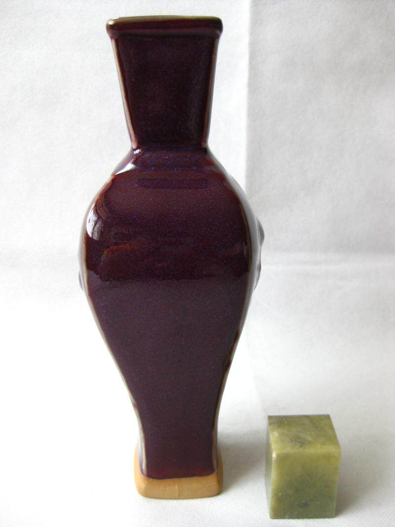 Authentic Yuzhou origin coal-fired Jun kiln sandalwood purple glaze Jun porcelain relief Chi dragon pattern four-sided Guanyin statue height 21cm bottle
