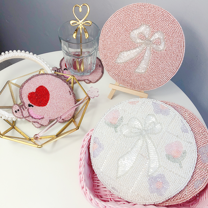 Foreign Trade Heavy Labor Export Japan Handmade String Beads Dining Mat Round Home Insulation Mat Small Fresh Anti Burn Mat