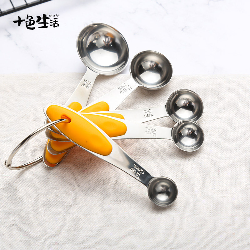 304 stainless steel small quantity spoon 5 piece package with a key silicone handle anti - slip durable baking tool