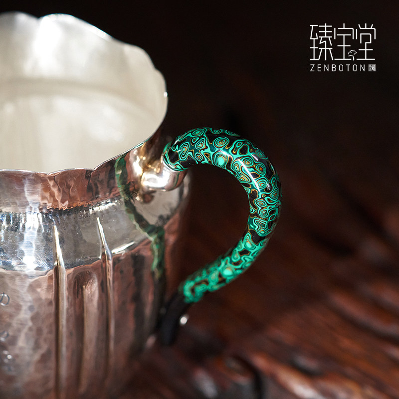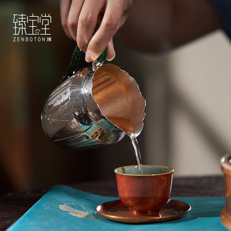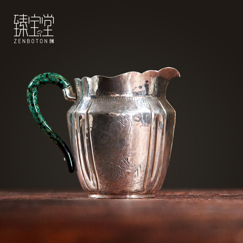 Zhenbaotang sterling silver 9999 fair cup pure handmade tea divider Chinese Kung Fu tea set large lacquer side handle single male cup