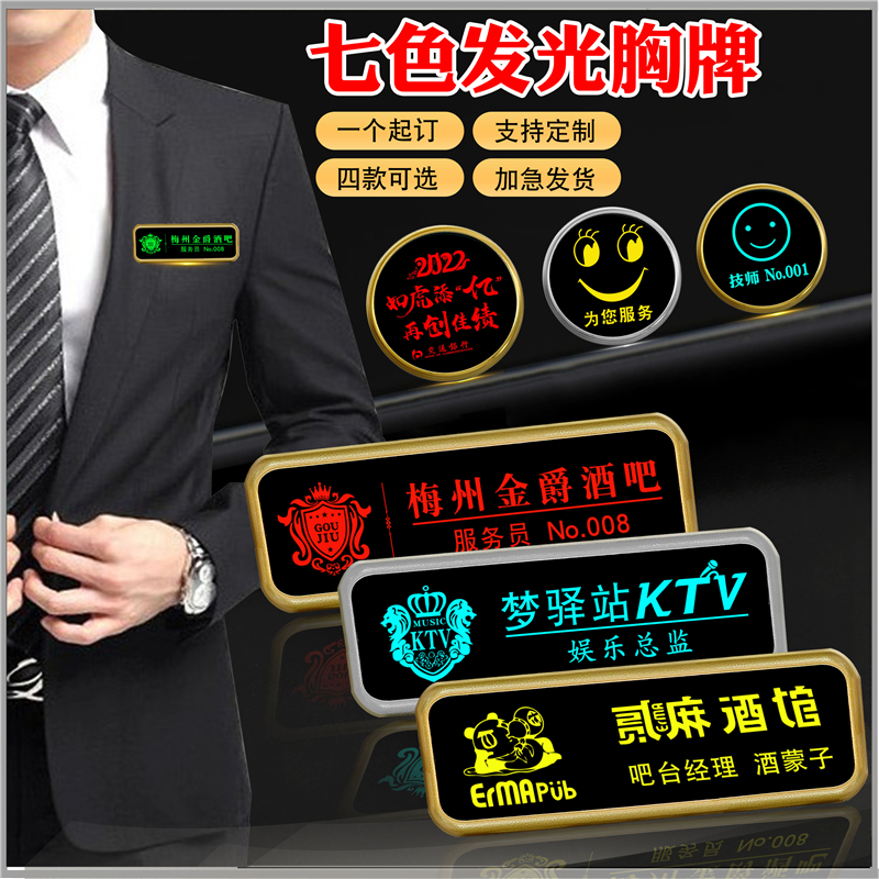 Royal Bra LED shining night light workers plate customized KTV bar pub custom hot pot shop employee license