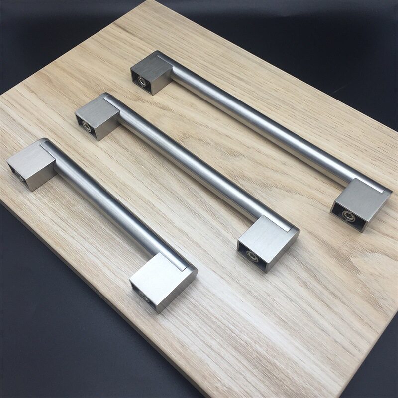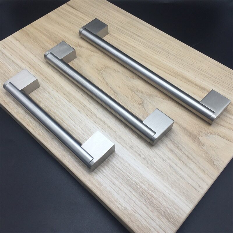 Modern Wire Drawing Brief European Style Nordic Style Stainless Steel Square Pipe Base Solid Drawer Wardrobe Whole Closet Cabinet Door Long Handle