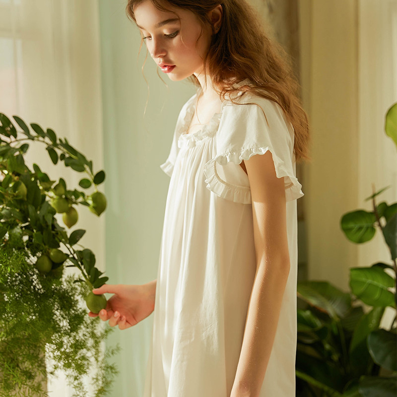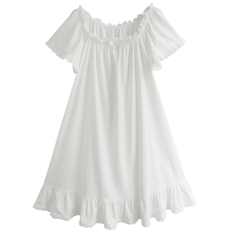 Chenxi Nightdress Women's Summer Short Sleeve Original Princess Palace Style Knitted Cotton Pajamas Loose Thin Solid Color Medium Short
