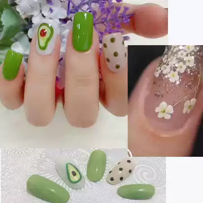Avocado green nail polish nail art ins Wind cute girl nail stickers paper Net red tremble sound Hyuna with flowers