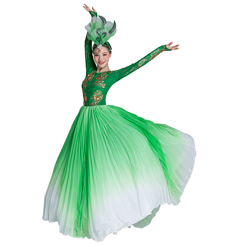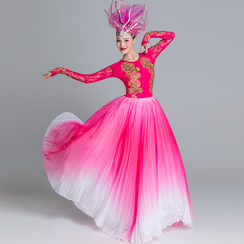 Modern dance long skirt stage chorus costume female performance costume adult new atmosphere opening dance big swing skirt