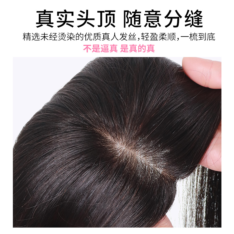 Head hair replacement piece Female full real hair wig piece incognito invisible middle bangs Back of the head cover white hair top cover