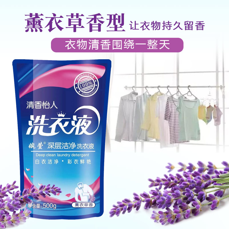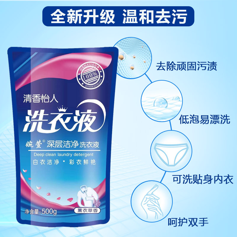 Wanxuan laundry liquid 4 bags of 4 pounds of lavender incense 500 grams of bag machine wash hands and wash the whole box batch