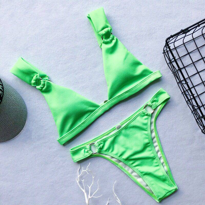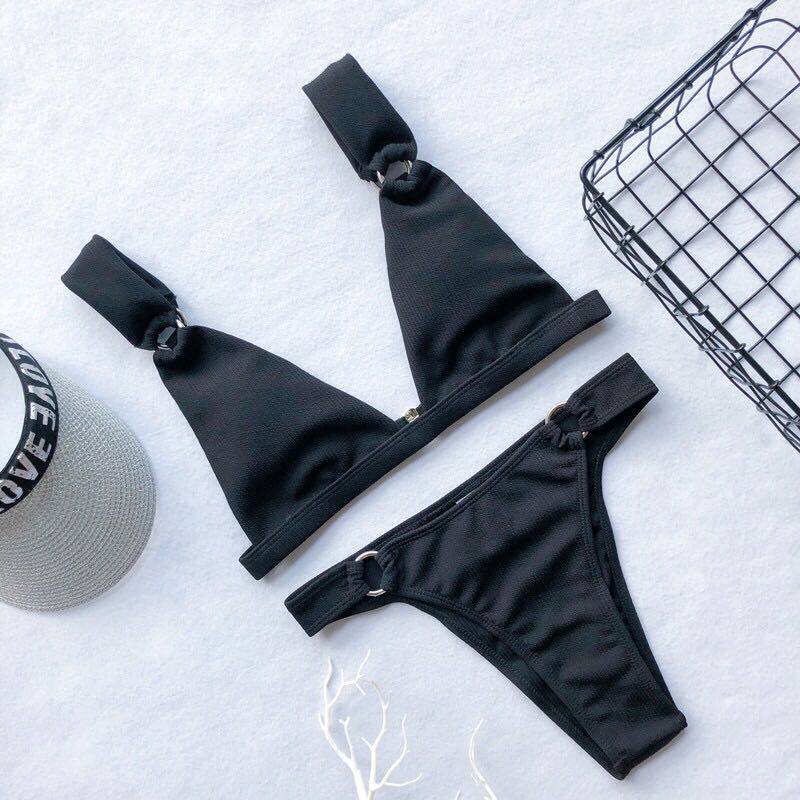 New pit strip bikini sexy triangle bag ring swimsuit 2019 Europe and the United States high waist two-piece swimsuit bikini