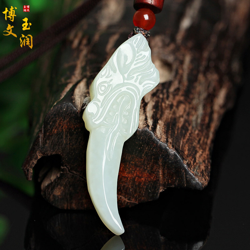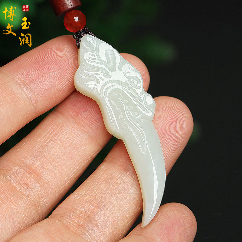 Natural Xinjiang Hetian jade white jade Wolf tooth pendant men's and women's jade necklace dominion really Wolf tooth personality hipster jewelry