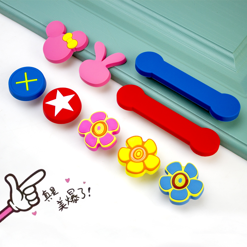 Children's room handle cartoon soft rubber handle cabinet door bone cabinet wardrobe color flower simple cabinet small handle
