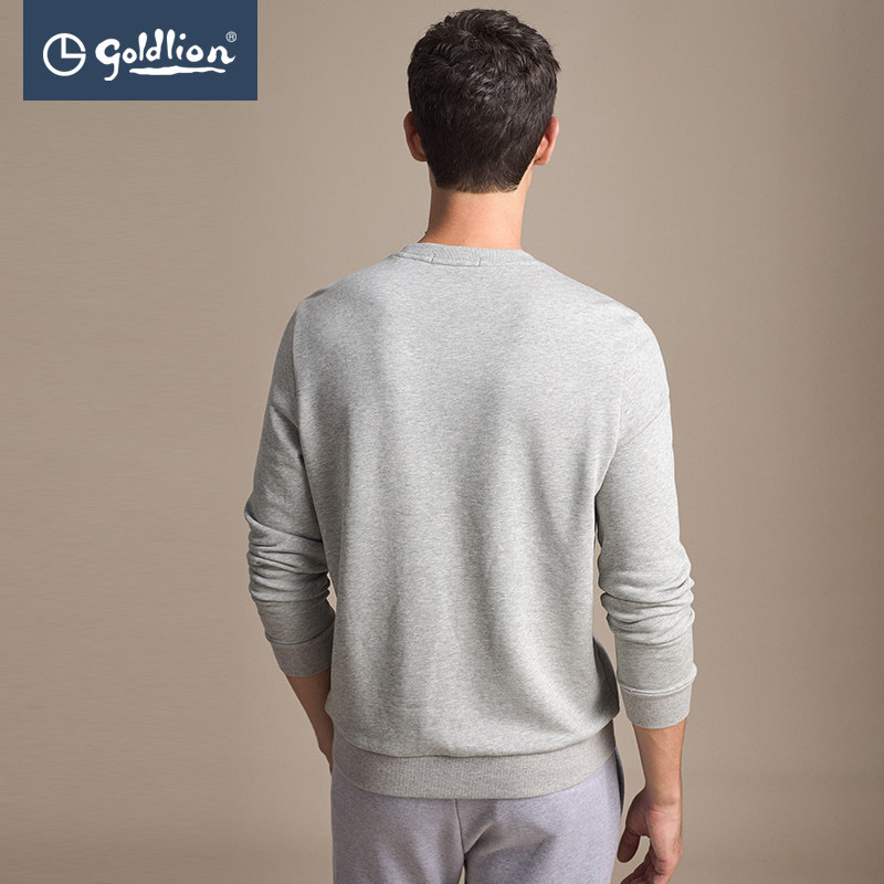 Kinli to spring and fall for men's pure cotton breathable tide logo logo embroidered round collar T-shirt long sleeve sweatshirt