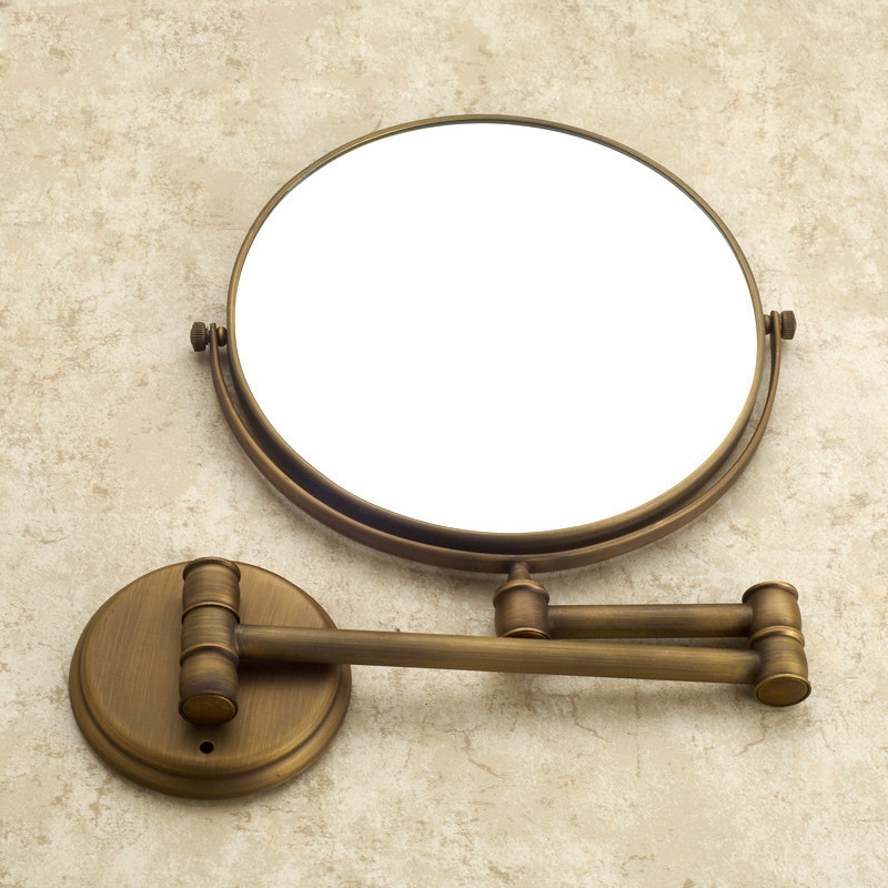 Bathroom makeup mirror Folding bathroom beauty mirror Antique double-sided powder room free hole wall-mounted telescopic makeup mirror