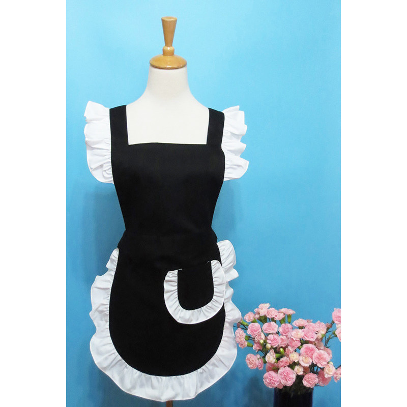 Korean Fashionable Cotton Apron Cute Japanese Cartoon Angel Maid Lotus Leaf Lace Cafe Restaurant Milk Tea Shop