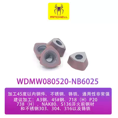 WDMW080520ZTR Large feed R2 milling blade 50 63R2 fast feed blade instead of R6R8 coarse knife grain