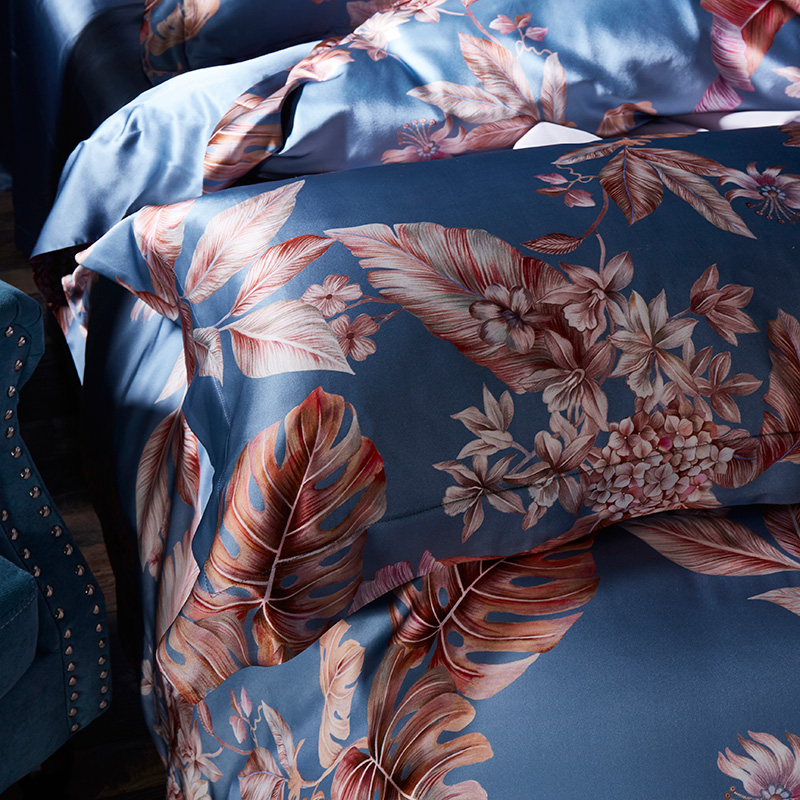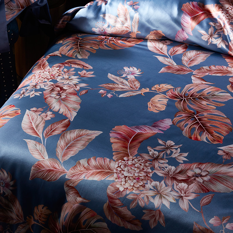 Genuine silk printed with four pieces of 100% mulberry silk four pieces of a wide silk blue field garden villa bed with supplies