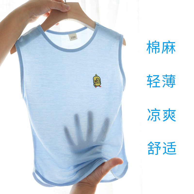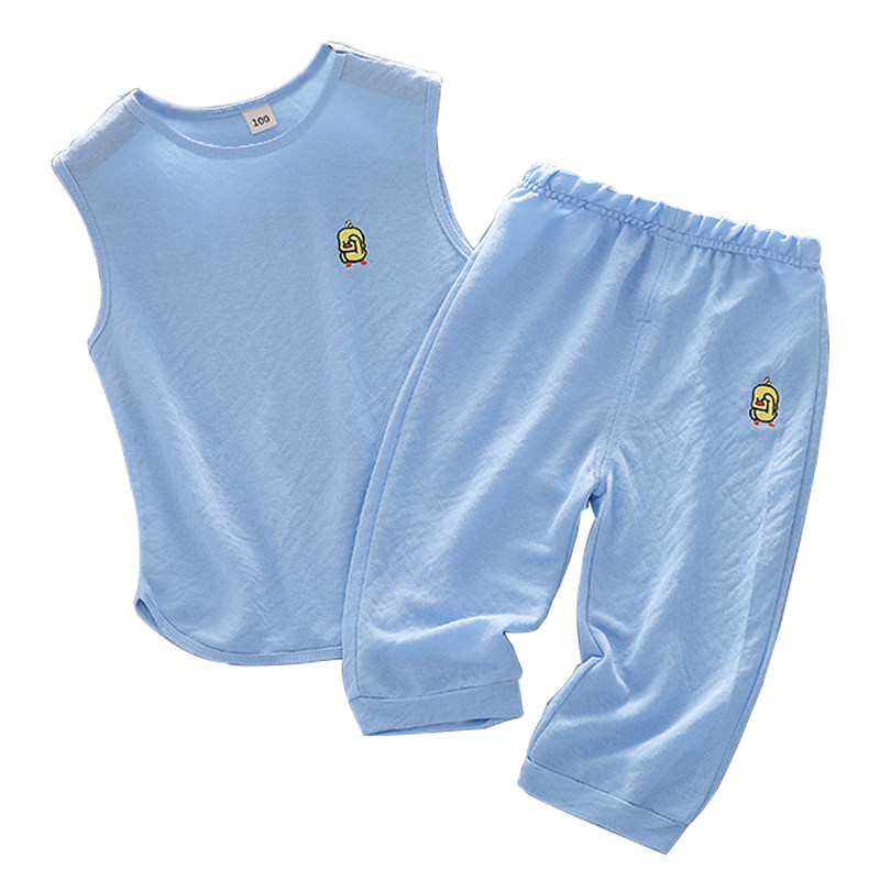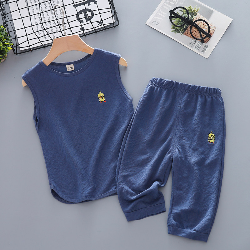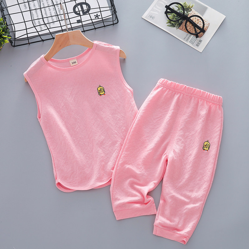 Children's ice silk suit CUHK child cotton linen air conditioning suit pyjamas male and female child vest pants summer clothes two-piece style