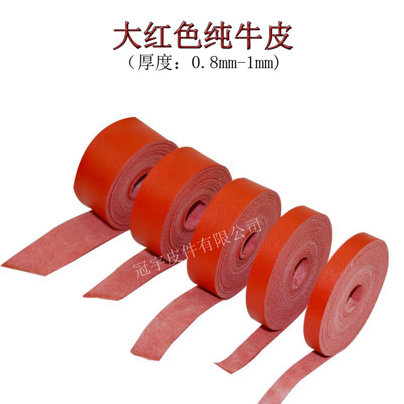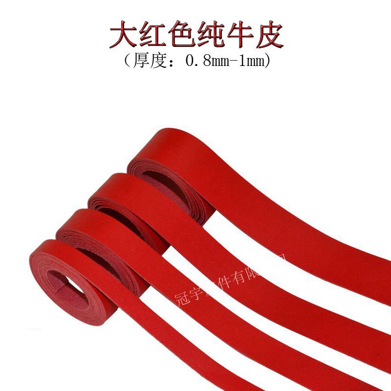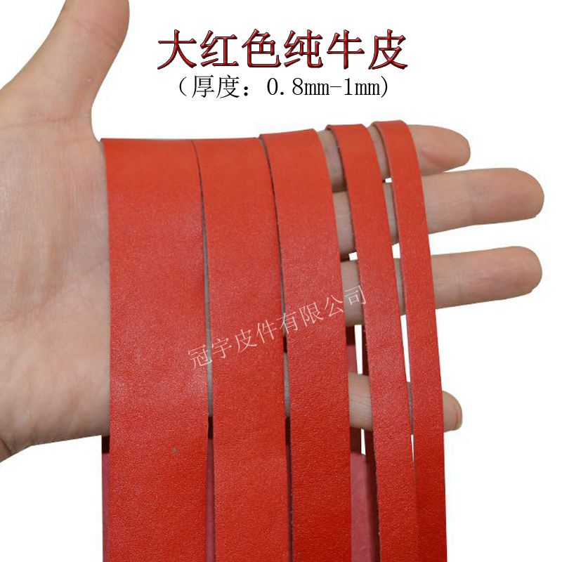 Big red 1 mm thick fur belt with cow leather cord cow leather strip wrapped cow slingshot knit rope