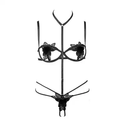 Sexy pajamas women's summer thin lace mesh transparent temptation home clothes private underwear with steel rings gathered