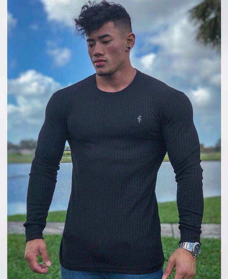 Fitness Net Red Jeremy Gao Shuai Wu Long the same FA round neck fitness training perspiration casual knitted elastic long sleeves